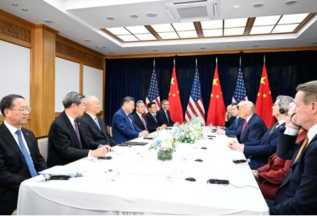 习近平强调,中国经济发展势头不错,今年前三季度增长率达5.2%,对全球的货物贸易进出口增长4%,这是克服内外困难实现的,来之不易。中国经济是一片大海,规模、韧性、潜力都比较大,我们有信心也有能力应对各种风险挑战。中共二十届四中全会审议通过了未来5年的国民经济和社会发展规划建议。70多年来,我们坚持一张蓝图绘到底,一茬接着一茬干,从来没有想挑战谁、取代谁,而是集中精力办好自己的事,做更好的自己,同世界各国分享发展机遇。这是中国成功的重要密码。中国将进一步全面深化改革、扩大对外开放,着力推动经济实现质的有效提升和量的合理增长,推进人的全面发展和全体人民共同富裕,相信这也将为中美合作开辟更广阔空间。