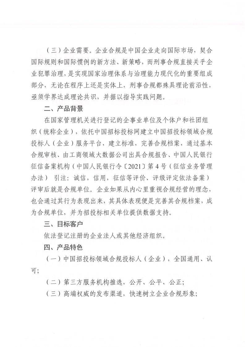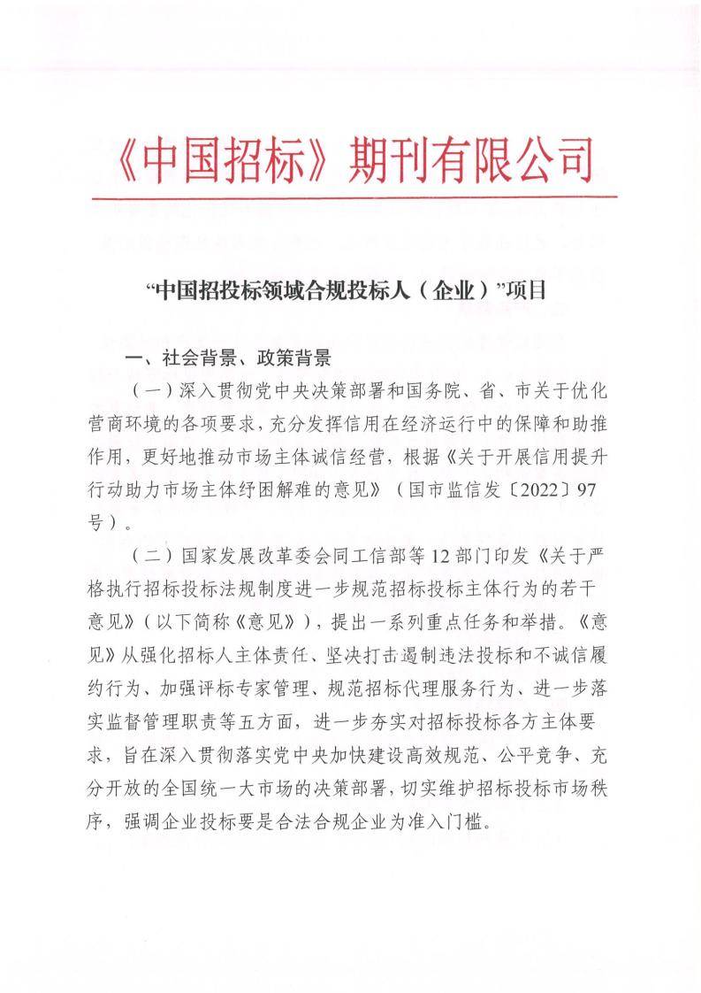 “中国招投标领域合规投标人(企业)”项目