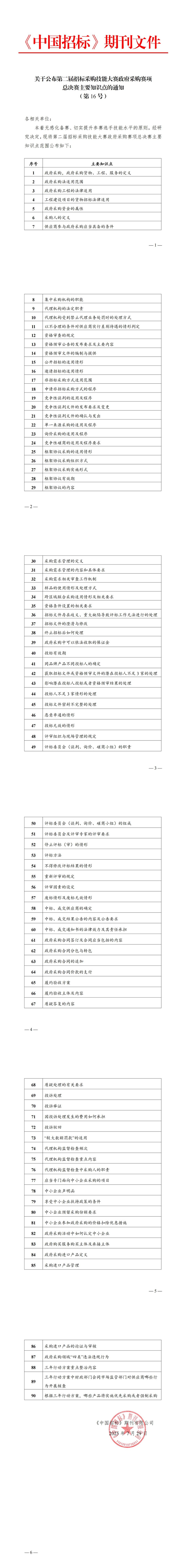 关于公布第二届招标采购技能大赛政府采购赛项总决赛主要知识点的通知(第16号)