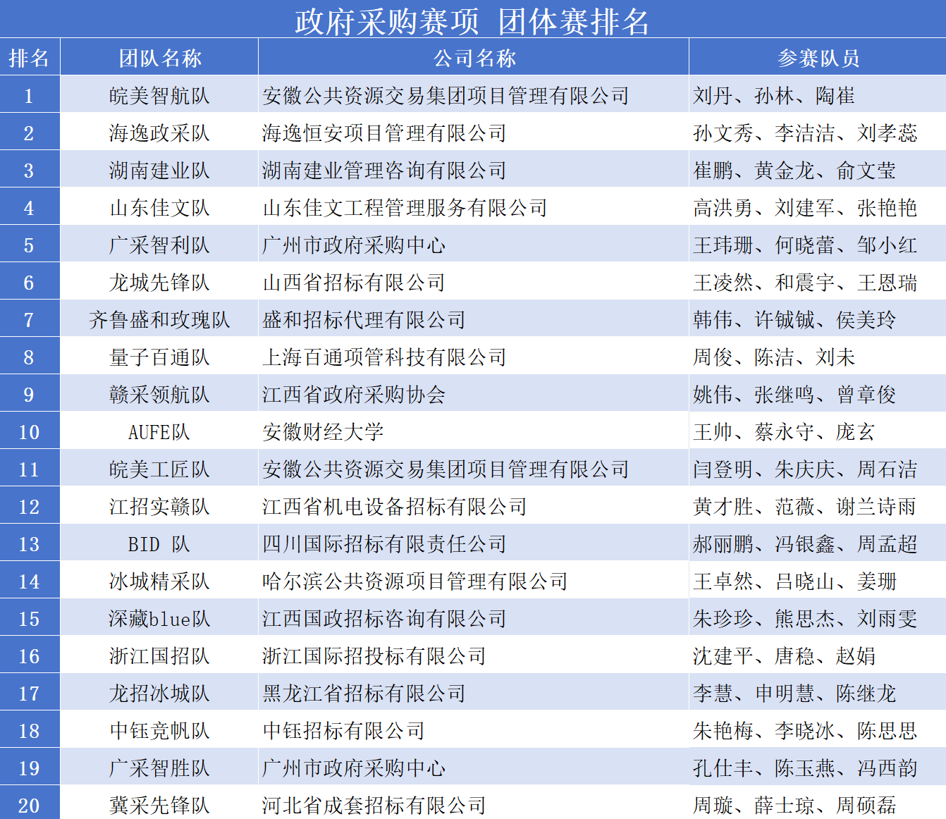 经过激烈角逐,政府采购赛项团体赛奖项荣耀揭晓:
