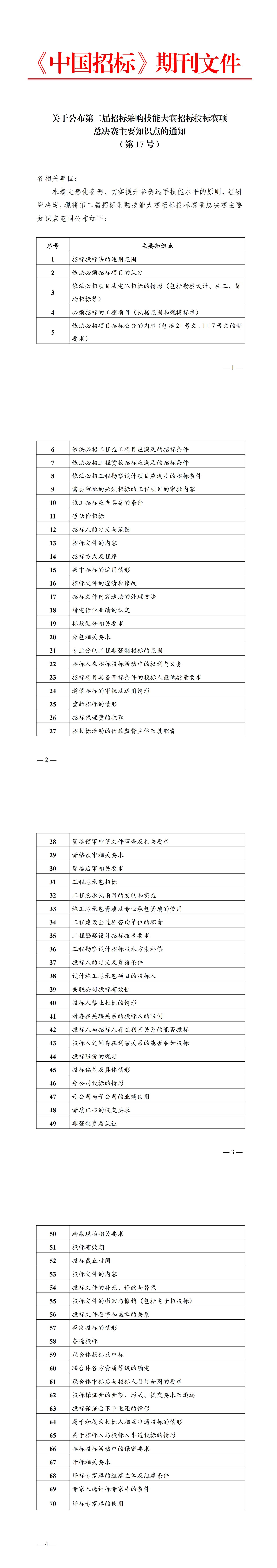 关于公布第二届招标采购技能大赛招标投标赛项总决赛主要知识点的通知(第17号)