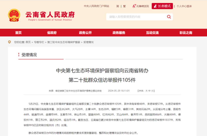 (中央第七生态环境保护督查组向云南省转办群众信访举报件)