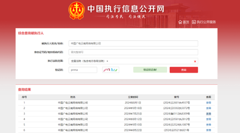 (中国广电云南网络有限公司被执行信息)