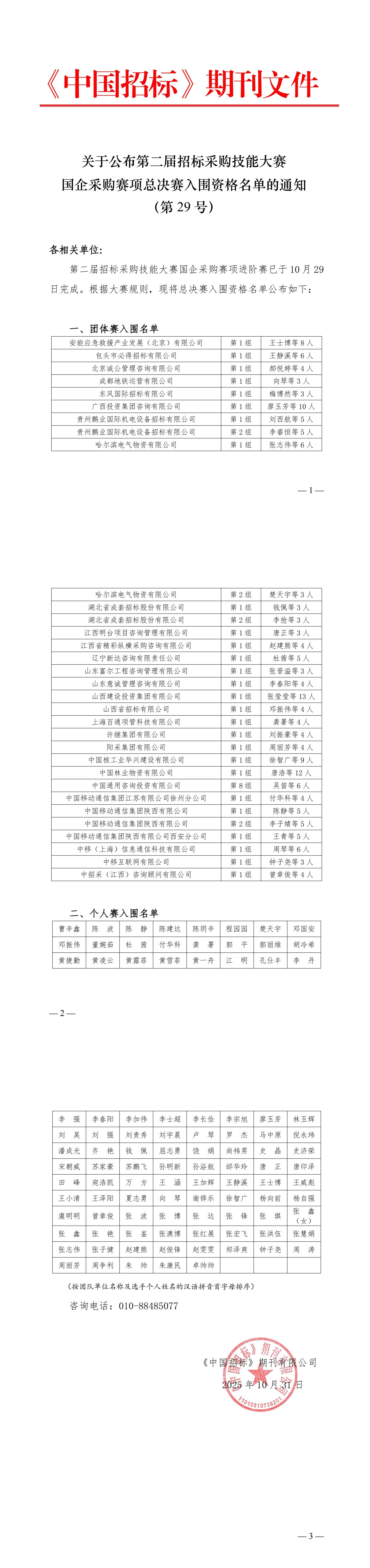 关于公布第二届招标采购技能大赛国企采购赛项总决赛入围资格名单的通知(第29号)