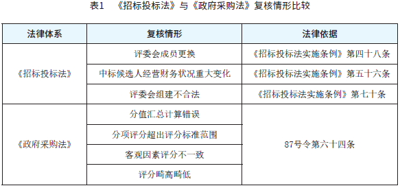 在《中华人民共和国招标投标法》(简称《招标投标法》)体系和《中华人民共和国政府采购法》(简称《政府采购法》)体系双轨并行的制度框架下,复核制度在具体规制上呈现差异化特点。